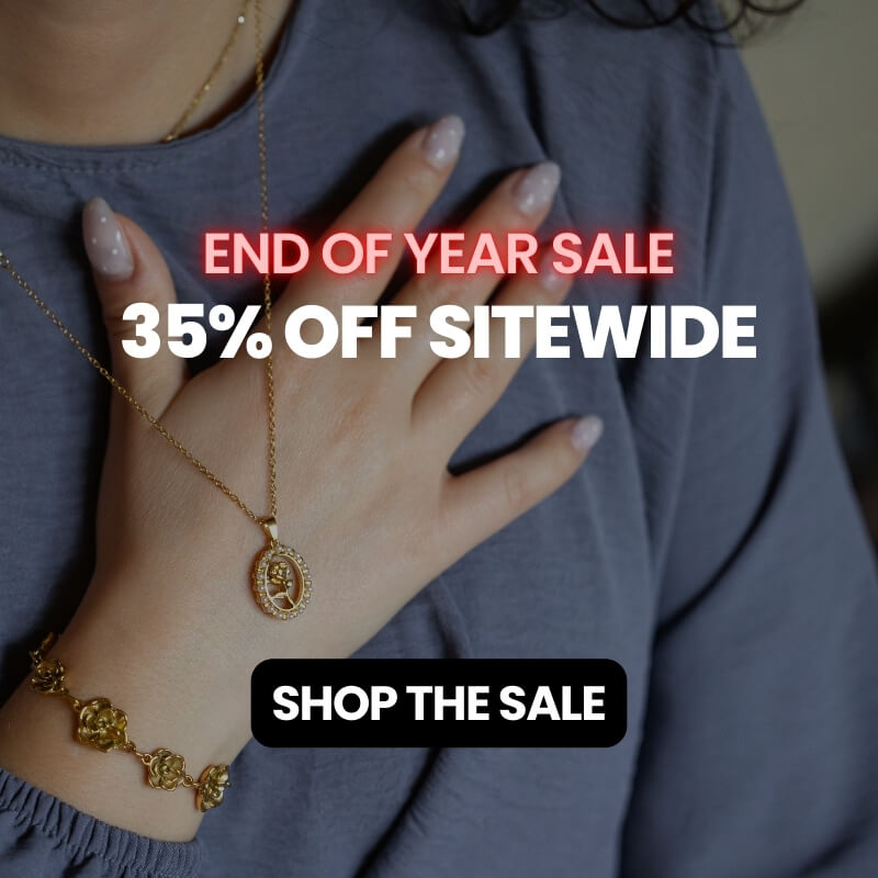 Our jewelry features a durable stainless steel core with a high-quality 18K Gold Coating for a long-lasting shine. It's hypoallergenic and guaranteed safe for sensitive skin.