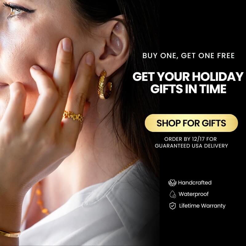 Our jewelry features a durable stainless steel core with a high-quality 18K Gold Coating for a long-lasting shine. It's hypoallergenic and guaranteed safe for sensitive skin.