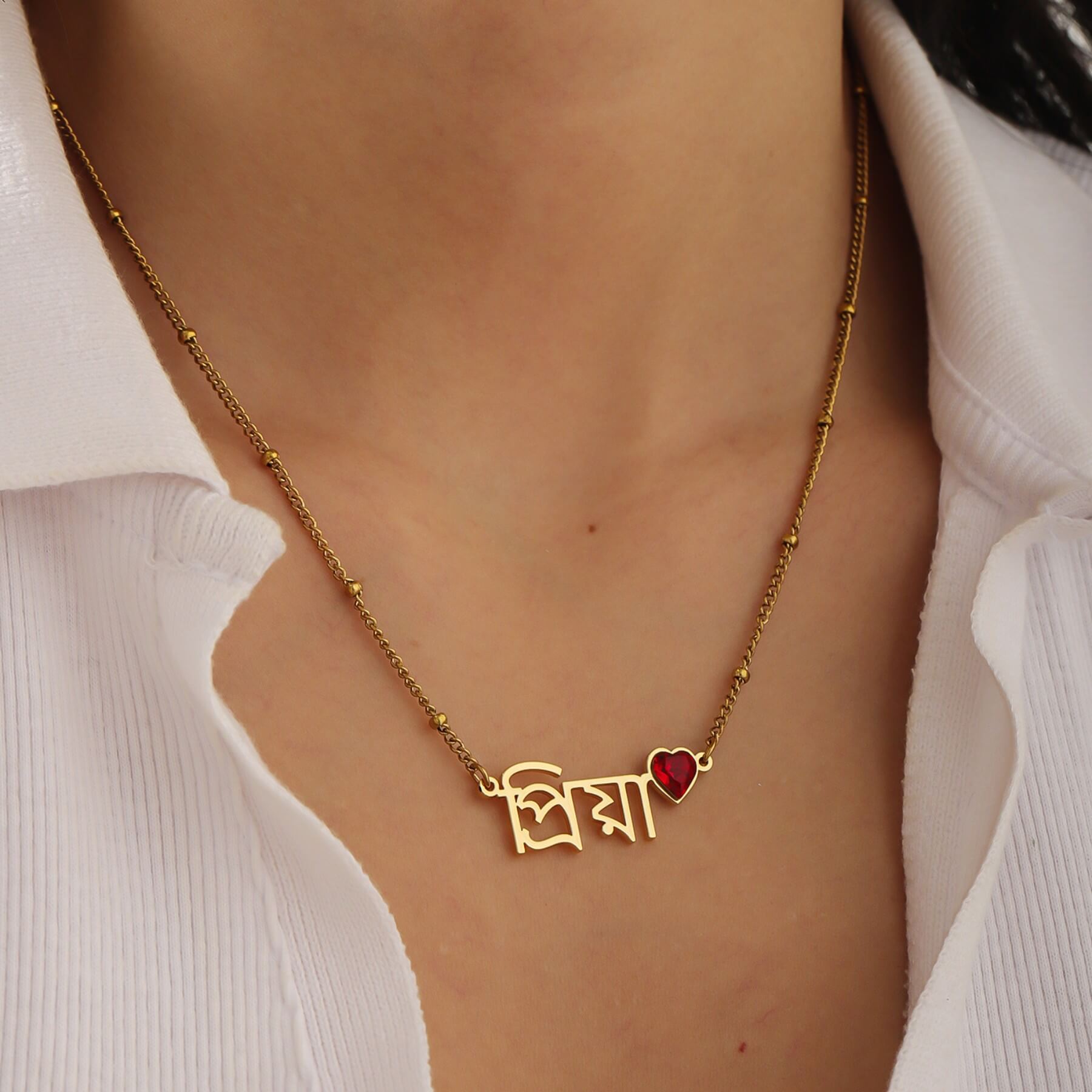 Add a personal touch with the Custom Heart Birthstone Name Necklace. Customize it with your own name, a loved one’s, or even a child’s, paired with their birthstone for a unique and meaningful accessory.