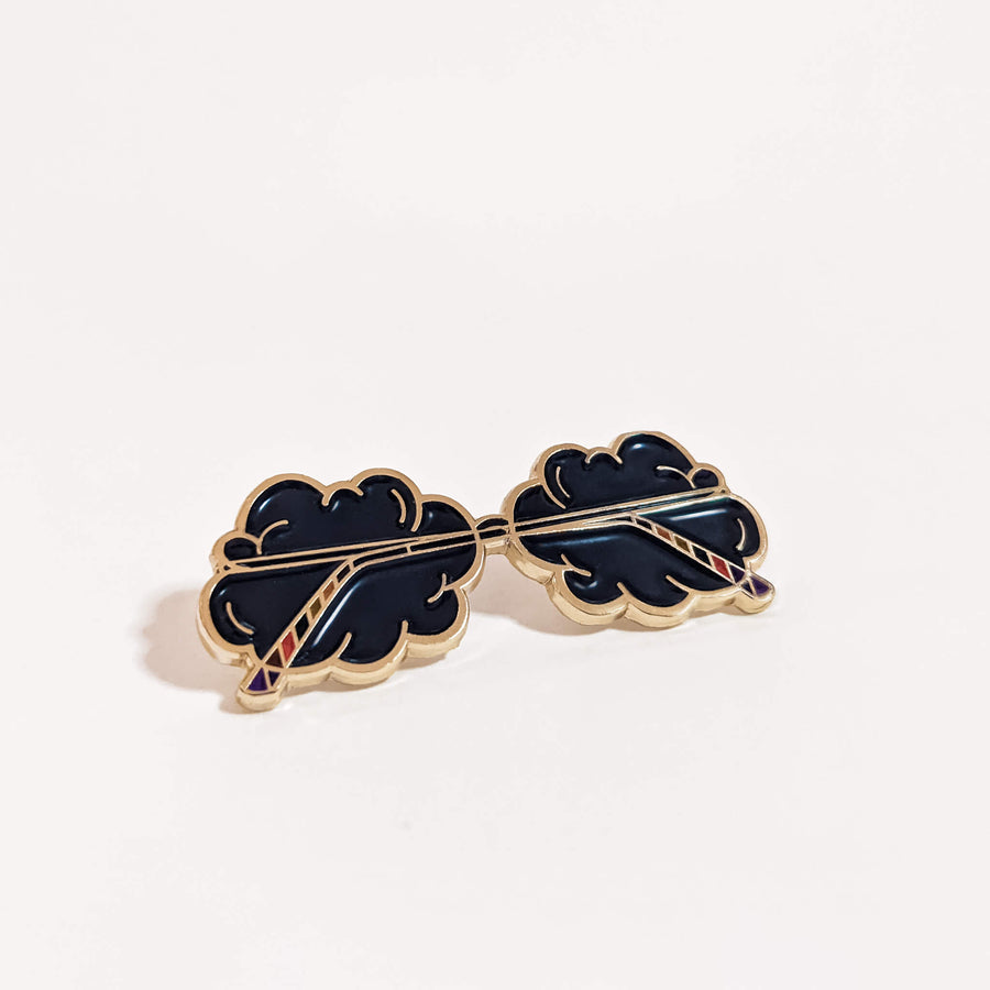 Partly Cloudy is a pin created to show that some days all that is seen is gray, but hidden behind the haze-tinted glasses is a rainbow waiting to brighten your day.