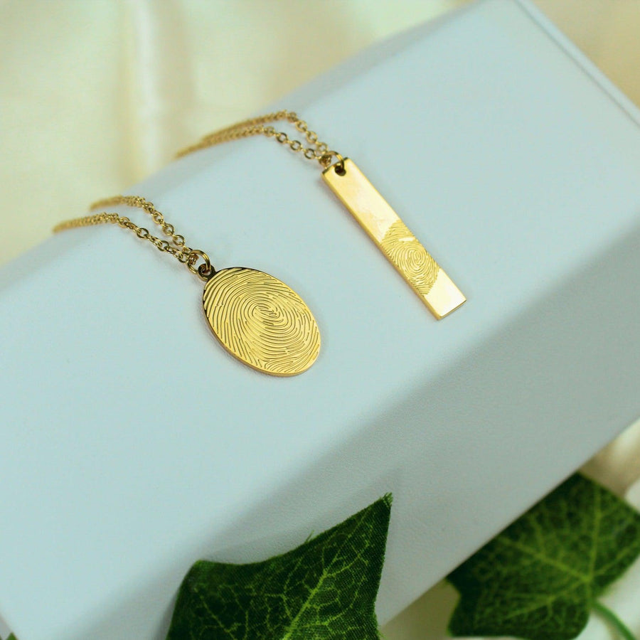 Now you can personalize your necklace with the fingerprints of a loved one. You can even add the name, date, or a short message to the back of your pendant.